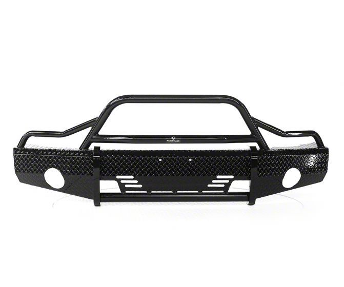 Protection and Off-Road Style. Don't settle for a run-of-the-mill bumper that offers minimal protection and no style. Upgrade to the Ranch Hand Summit Bullnose Front Bumper and experience the benefits of top-quality materials, exceptional design, and unparalleled protection. This heavy-duty bumper not only provides top-of-the-line protection but also adds a rugged off-road aesthetic to your ride. The diamond plate surface and "Off Road" rally styling of this bumper make it stand out from the crowd and the contoured skirt complements the design, giving your vehicle a sleek and cohesive look.