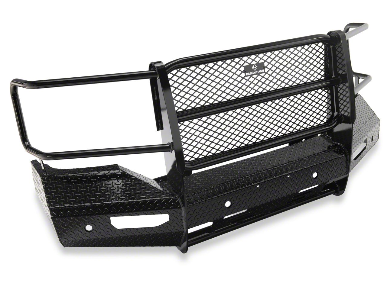 Dependable Quality. When you need a tough bumper that can withstand any terrain, the Ranch Hand Summit Front Bumper is the perfect choice. It's made with diamond-plate steel and is resistant to harmful UV rays, so it will look great and stand up to the toughest conditions. On top of that, it meets all of our strict quality standards, so you know it's made to last.