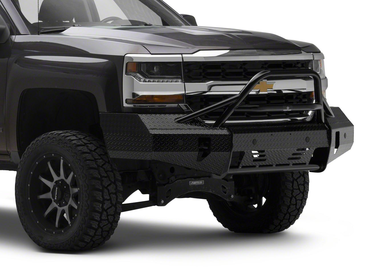Diamond Plate Steel Built. Crafted with durable diamond plate steel, this bumper is built to withstand the toughest conditions, ensuring your vehicle's front end is well-protected against impacts and road debris. The sleek black finish adds a touch of rugged sophistication to your Silverado, making it stand out on the road or trail.