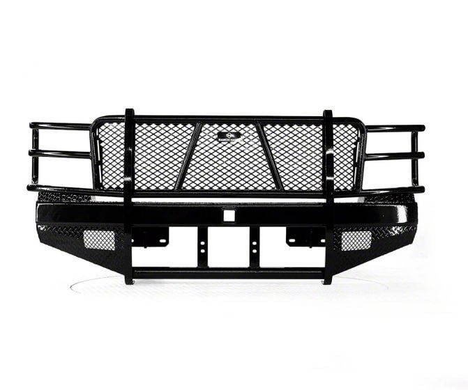 Tough Front Protection. Equip your Chevrolet Silverado 2500 HD with this Ranch Hand Sport Front Bumper to conquer the challenging trails with confidence. The raised diamond pattern of the bumper surface appealingly enhances your truck’s aggressive exterior while providing a bolder front end. The full-width configuration sleekly outlines the body contours of your truck and the tough grille guard offers reinforced front protection.