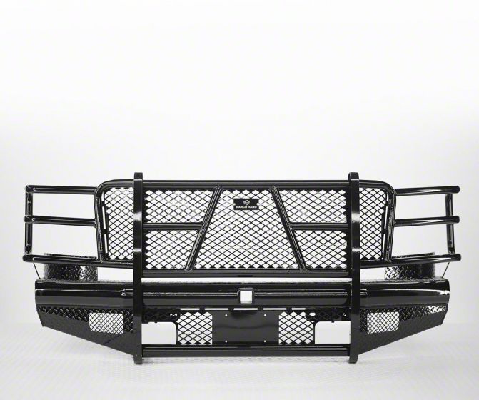 Durable Quality. Constructed with 4-inch diamond-plate steel, the Ranch Hand Legend Front Bumper offers exceptional strength and protection for your truck's front end. The black powder-coated finish not only adds a sleek and aggressive appearance but also provides superior resistance against scratches, ensuring the bumper remains looking great over time.