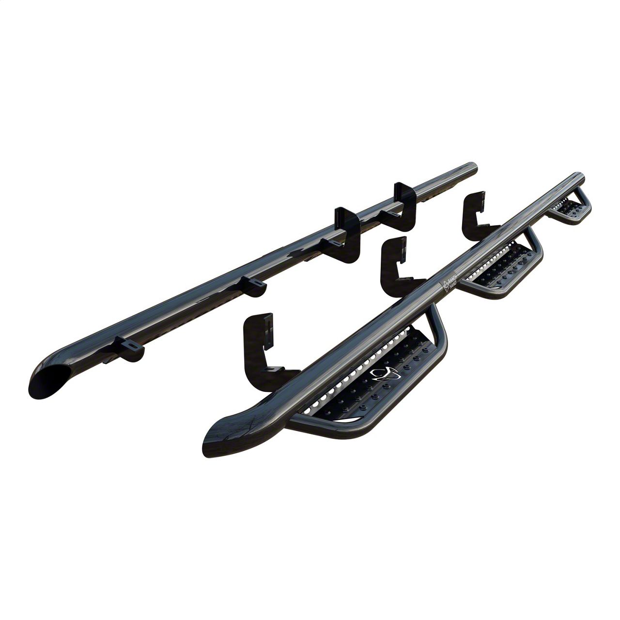 Construction and Appearance. Manufactured from premium 3/16-inch steel and 3-inch diameter tubular steel, these side steps deliver maximum strength and corrosion resistance. The 12-gauge punched pattern tread ensures excellent traction, while the gloss black finish provides an added layer of protection against the elements. Meticulously built in the USA within a state-of-the-art facility, these bars are designed to meet or exceed the highest industry standards for quality and durability.