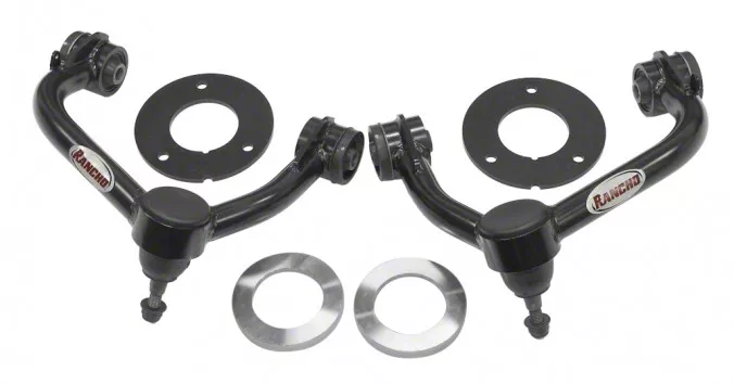 Reinforced Strength. If you wanted to give your lifted F-150 added durability and increased performance, check out the Rancho Performance Front Upper Control Arms for a 2.50 to 3.50-Inch Lift. This front upper control arms are designed to keep the ball joint within its typical operating range and also to give more wheel travel and caster to help with alignment as compared to the original control arms.