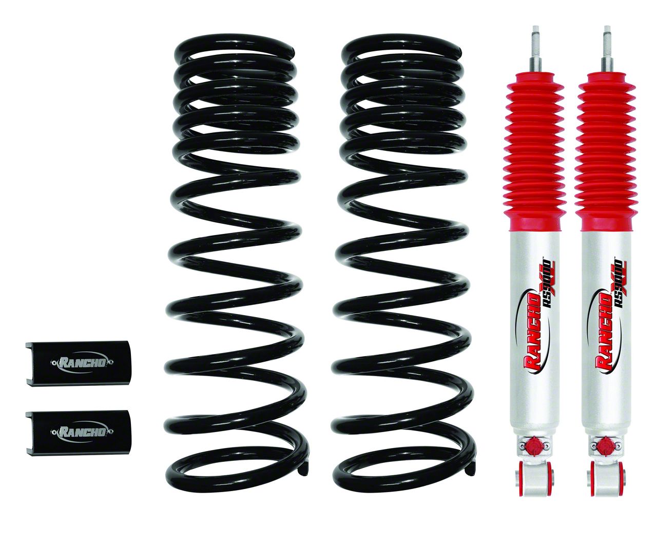 Performance. The Rancho Front RS9000XL Shocks included in this system are designed to deliver amazing damping performance and control. These high-quality shocks give improved stability, better handling, and reduced body roll, resulting in a smoother and more controlled ride both on and off the road.