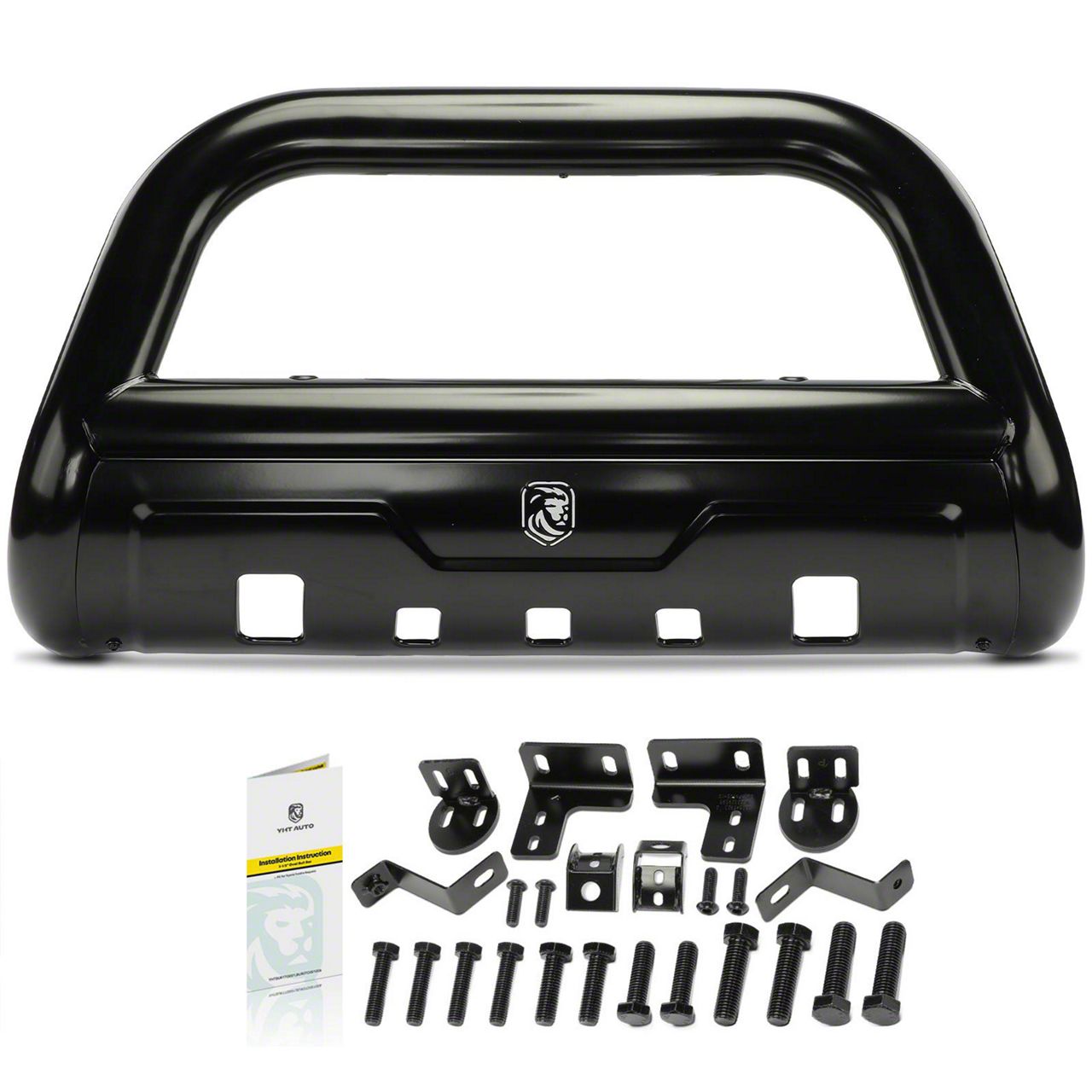 [Note- 1] 3.5" Black Carbon Steel Oval Bull Bar Bumper Grille Guard with Formed Skid Plate & Light Mounting Bracket, without light