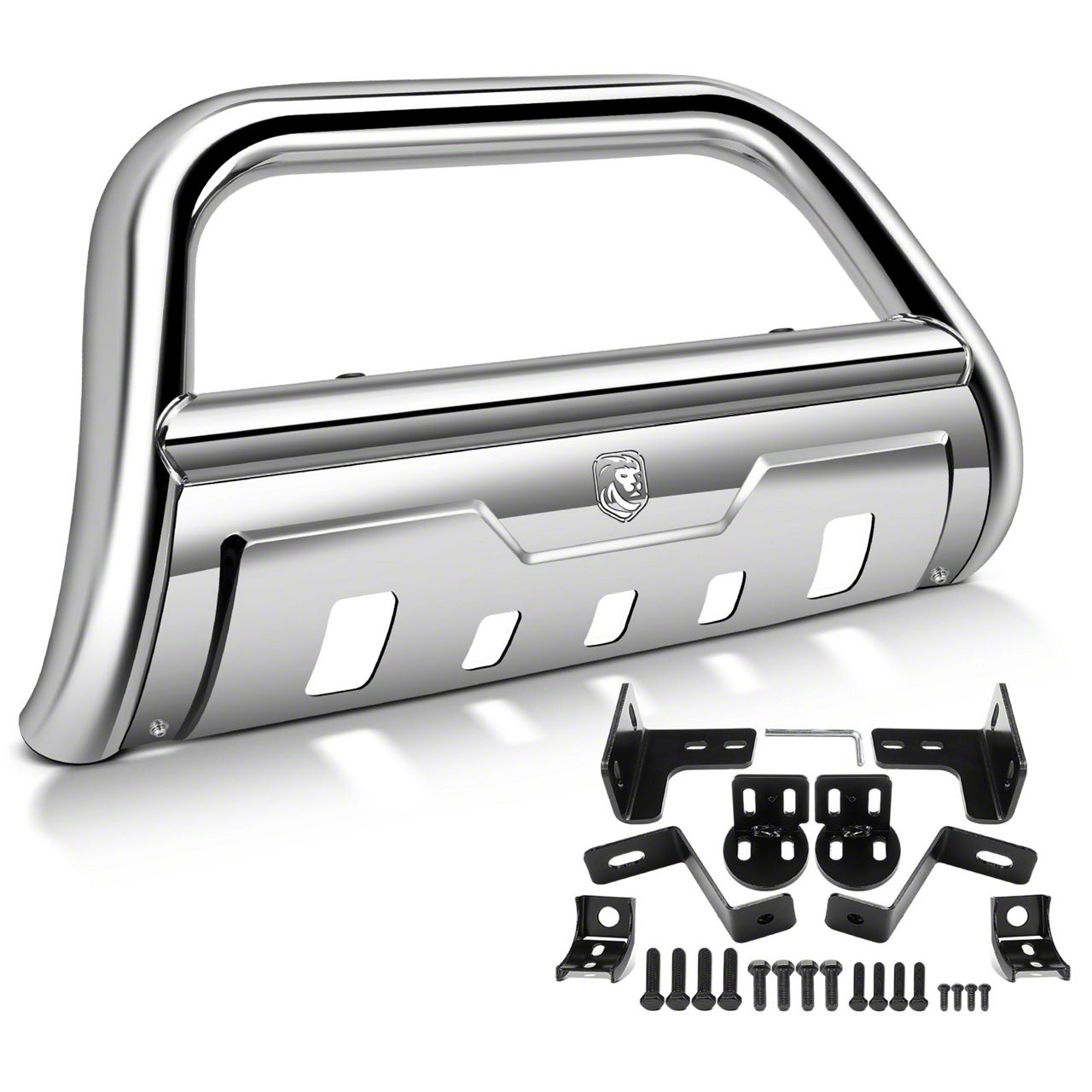 [Note- 1] 3.5" S/S 304 Bull Bar Bumper Grille Guard with Formed Skid Plate & Skid Plate Light Mounting Bracket, with Light Brackets, without Lights.