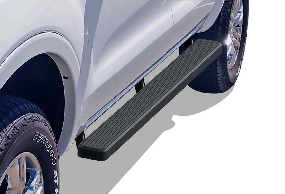 Unique Look. The 4-Inch iStep Running Boards; Black are designed for effortless entries and exits to your truck cab. Inspired by iPhone, this sleek look delivers a unique profile that’s sure to turn heads. Built to handle up to 300 pounds of weight without flexing, this stellar design is sure to make an impact.