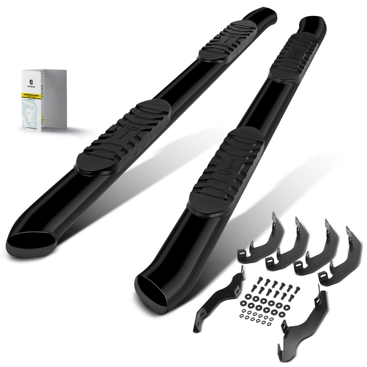 Improved Safety. With their solid construction, non-slip surface, and thoughtful design, these step bars offer peace of mind and reduce the chances of slips or mishaps while getting in and out of your vehicle. Added Style And Aesthetics. With their sleek design, modern contours, and meticulous attention to detail, YHT Auto Side Step Bars effortlessly elevate the aesthetic appeal of your vehicle, adding a touch of style and sophistication. Customizable Options. They are available in various styles, finishes, and designs, allowing vehicle owners to select the best matches their preferences. Application. Compatible with: 2019-2023 Ford Ranger, Extended Cab Pickup. Note. 【Note-1】 5" Black Steel Oval Bent End Side Bars.; 【Note-2】 It fits with Extend/Super Cab (2 Full-Size Doors & 2 Narrower Doors) only, not fit Crew Cab/SuperCrew Cab (4 Full-Size Door) or Standard/Regular Cab (2 Doors).
