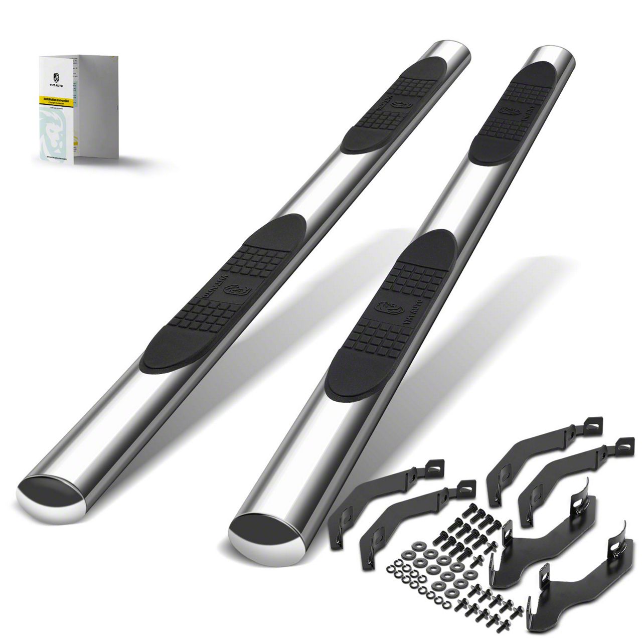 Protection Against Road Debris. They provide an effective barrier against road debris, effectively safeguarding your vehicle's body from potential scratches, dings, and other damage caused by rocks, gravel, and other debris encountered during your travels. Increased Functionality. The side step bars greatly enhance your vehicle's functionality by serving as a sturdy platform for easy access to roof-mounted accessories such as roof racks and cargo carriers, adding convenience and versatility. Added Style And Aesthetics. With their sleek design, modern contours, and meticulous attention to detail, YHT Auto Side Step Bars effortlessly elevate the aesthetic appeal of your vehicle, adding a touch of style and sophistication. Application. Compatible with: 2019-2023 Ford Ranger, Extended Cab Pickup. Note. 【Note-1】 5" Chrome S/S 304 Oval Bent End Side Bars.; 【Note-2】 It fits with Extend/Super Cab (2 Full-Size Doors & 2 Narrower Doors) only, not fit Crew Cab/SuperCrew Cab (4 Full-Size Door) or Standard/Regular Cab (2 Doors).