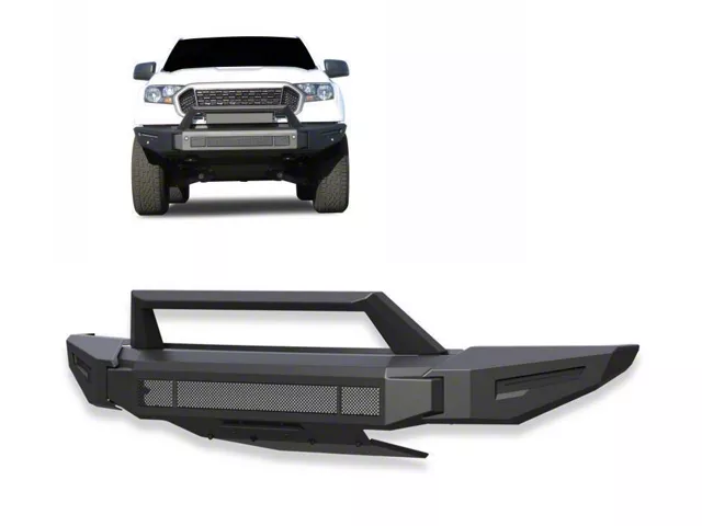 Built to Conquer Any Terrain. Its modular design not only enhances the rugged look of your Ranger but also offers increased ground clearance for off-road adventures. Finished with a sleek black powder-coat, this bumper resists rust and corrosion, ensuring long-lasting durability and a continually fresh appearance. The design incorporates multiple mounting points, providing options for additional accessories like lights or a winch. Protective mesh grilles are integrated to safeguard key components from debris while adding a distinctive aesthetic touch.