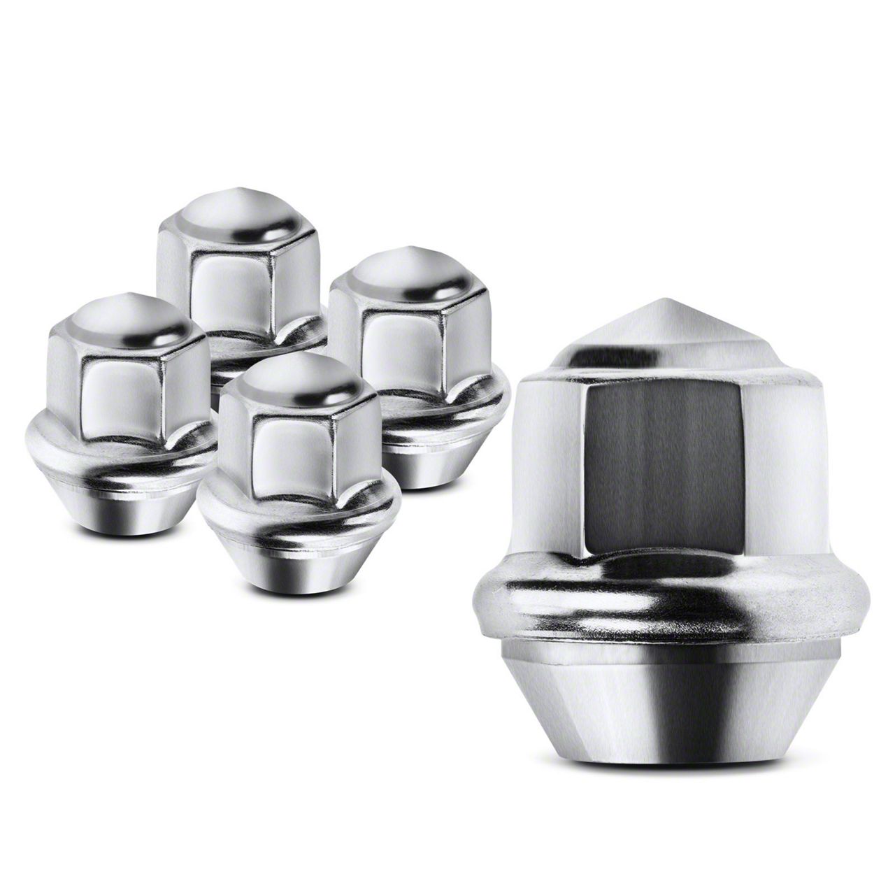 High-Quality Chrome Lug Nuts. The Chrome Lug Nuts; M12x1.5; Set of 5 (19-20 Ranger) provide a durable and secure fastening solution for your vehicle’s wheels. These lug nuts ensure safety by maintaining tight wheel attachment during driving, crucial for optimal vehicle performance and safety.