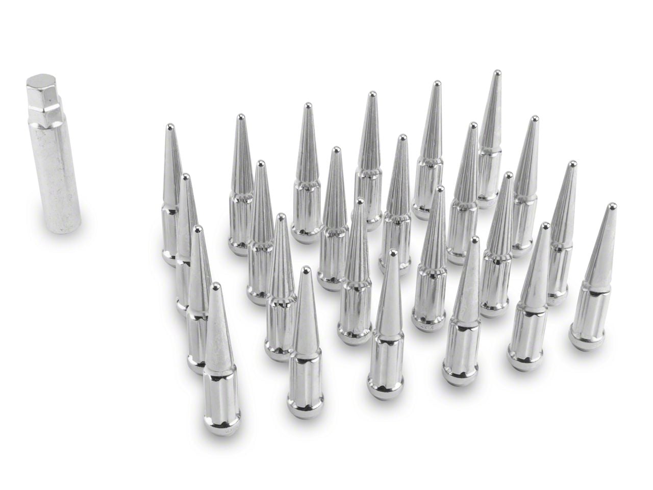 Application. Coyote's Chrome Spike 6-Lug Nut Kit 12 mm x 1.50 is created to fit all 2019-2026 Ford Rangers.