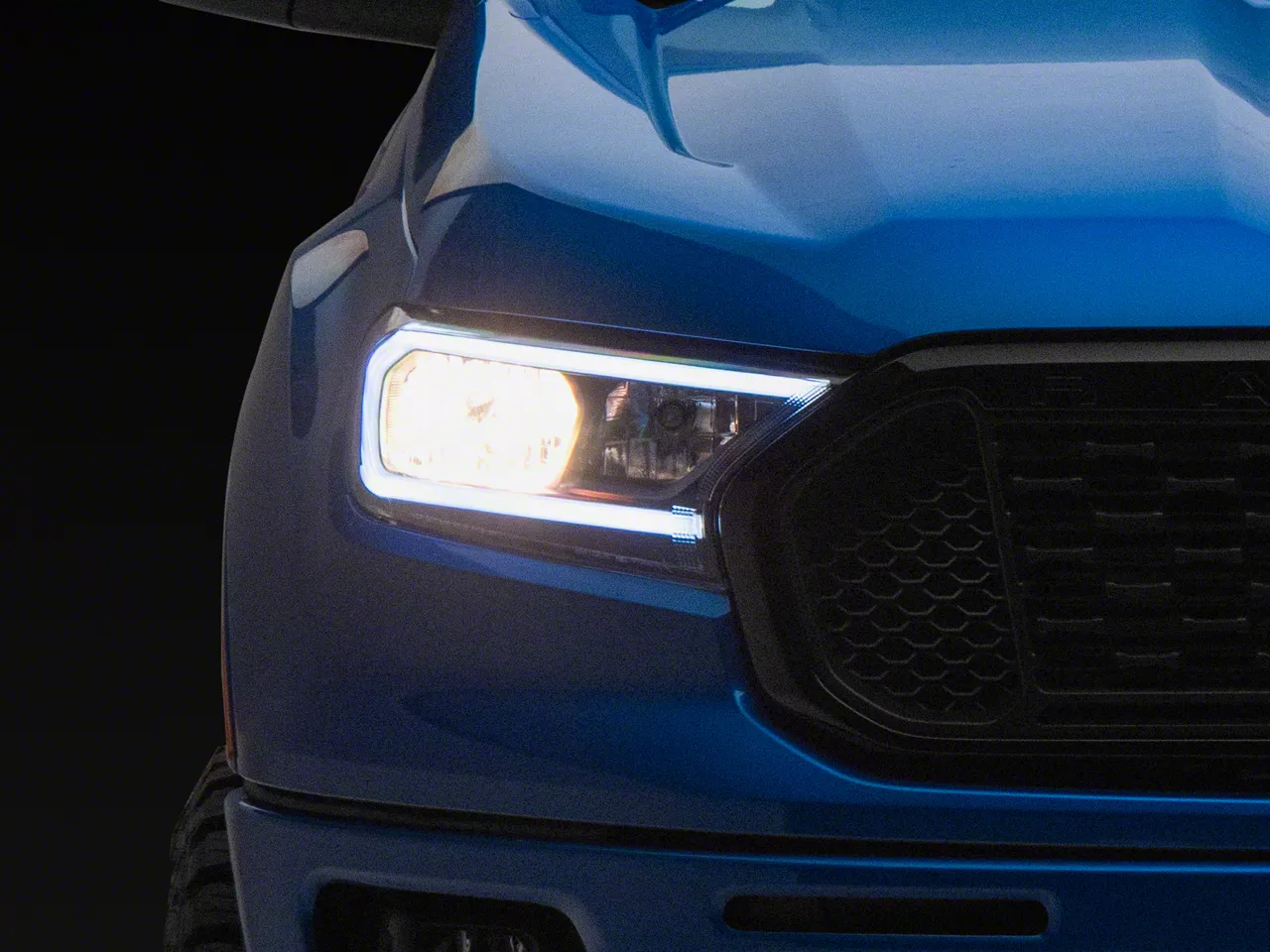 Application. These Headlights fit 2019-2023 Ford Ranger Models with Factory Halogen Headlights. They are not compatible with Lariat models or models equipped with LED daytime running headlights. This upgrade provides enhanced lighting and a modern aesthetic for your vehicle.