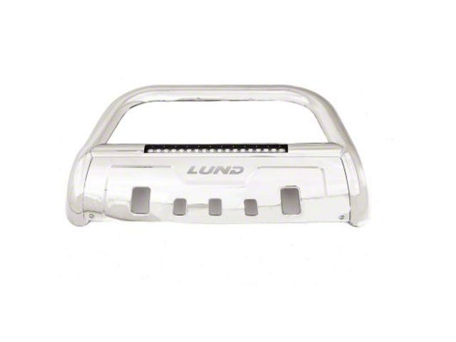 With a Heavy-Duty LED Light Bar. To make your nighttime drives safer, this bull bar comes with an integrated heavy-duty 20-inch LED light bar. Generating a luminous flood beam pattern and 3,000-lumen output, this light bar allows you to clearly see the road ahead, minimizing your risks of accidents.