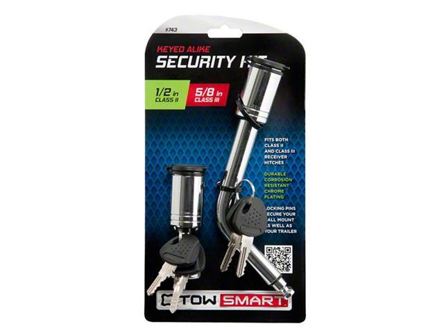Application. This Locking Boomerang Hitch Pin and Coupler Lock fits 1/2 and 5/8-inch trailer hitch receivers, offering universal compatibility for various vehicles.