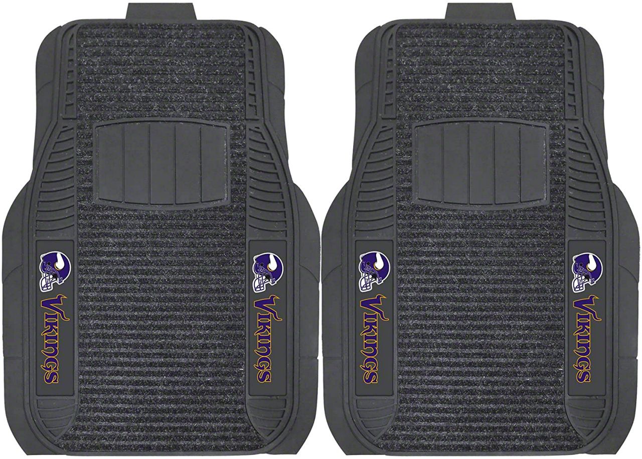 Sporty All Weather Protection. An excellent way to prevent spills from damaging your vehicle's carpet is by installing a set of Front Floor Mat Liners. Designed with a deep channeled pattern, these Mats will contain spills, mud, dirt or snow to protect your vehicle's carpeted areas. Best of all these Front Floor Mat Liners feature an officially-licensed 3D molded Minnesota Vikings logo to let everyone know who your favorite NFL team is.
