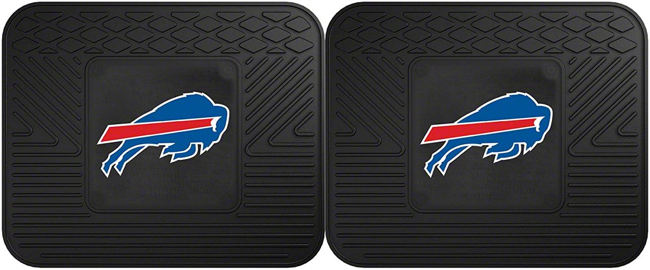 Application. These Molded Rear Floor Mats with officially-licensed Buffalo Bills logo feature a universal design so they will fit most makes and models of vehicles. Sold as a set of two Mats.