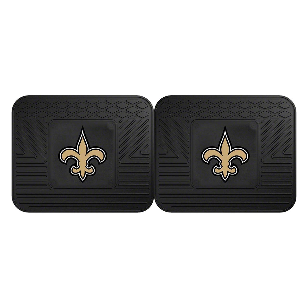 Application. These Molded Rear Floor Mats with officially-licensed New Orleans Saints logo feature a universal design so they will fit most makes and models of vehicles. Sold as a set of two Mats.