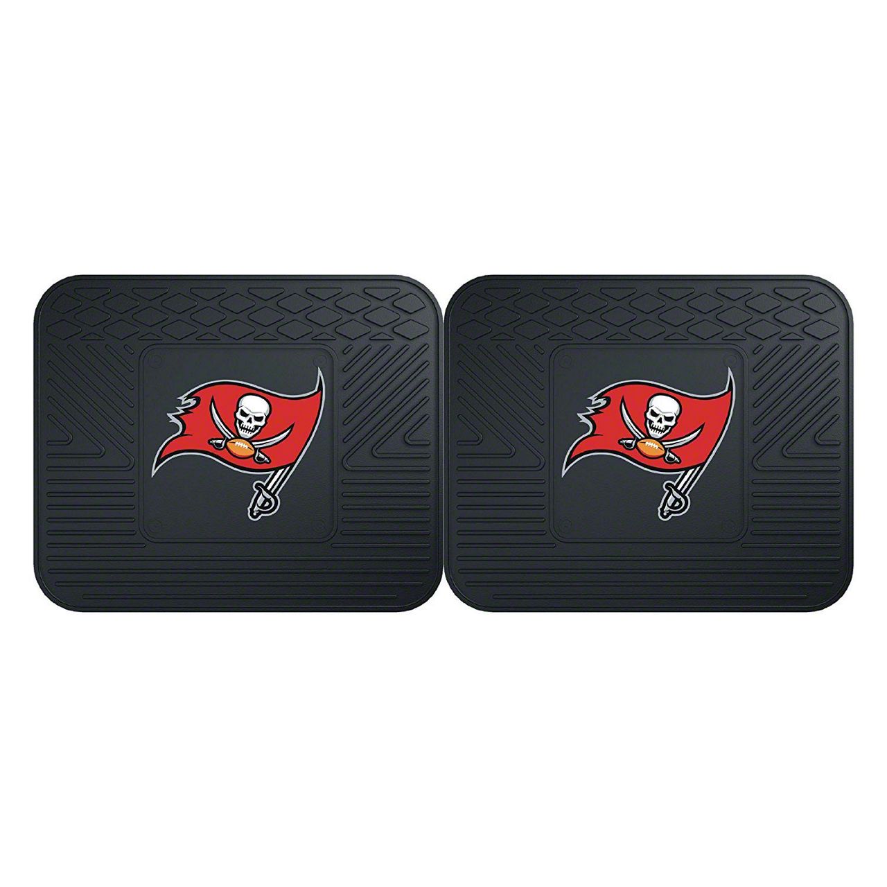 Application. These Molded Rear Floor Mats with officially-licensed Tampa Bay Buccaneers logo feature a universal design so they will fit most makes and models of vehicles. Sold as a set of two Mats.