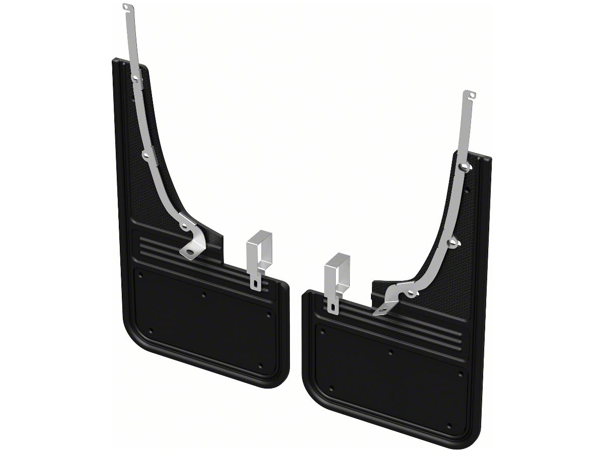 Durable Guards. These Mud Flaps provide reliable front-end coverage for your vehicle, helping maintain the quality of the finish by blocking damaging debris. The Mud Flaps are designed to reduce the impact of rocks, mud, and dirt that accumulate during daily travel. This product serves as an important protective measure, preserving long-term appearance and condition.