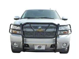 Defend your front end with Steelcraft's Heavy Duty Grille Guard. It's wrap around design will keep your entire front end and headlights protected, all while giving your vehicle an intimidating transformation.