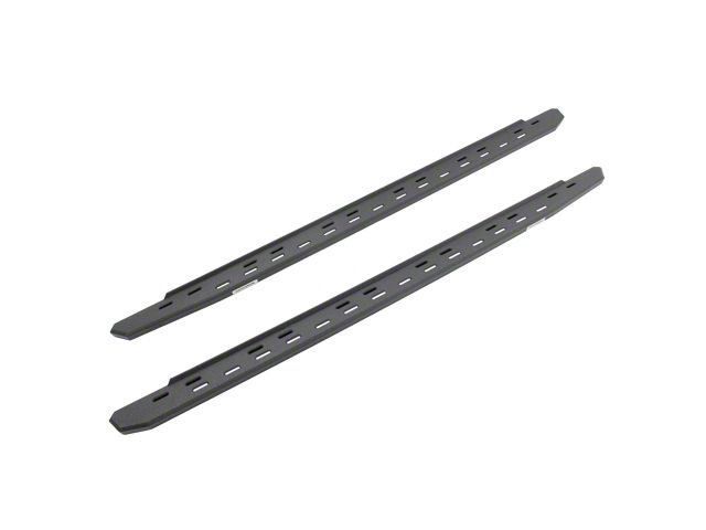 Description. Meet the third edition of the legendary Go Rhino RB Series of running boards: the RB30 Slim Line Running Boards. The RB30 is the next generation of Raptor-inspired design that will make your truck, Jeep, Bronco or SUV stand out from the crowd. With its aggressive, stylish appearance, this cab-length, bolt-on side step provides maximum traction and features an open flow-through design that prevents mud, ice, and snow from accumulating. The RB30 Slim Line Running Board offers the same heavy duty toughness as the original-width RB30, but with a slimmer design that fits tighter along the cab for increased ground clearance when off-roading. The RB30 Slim Line is 5” wide for most its length before it tapers (compared to 7” wide for the original-width). The corrosion-resistant 16-gauge steel step mounts tightly to factory mounting points along the lower rocker panel and it’s strong enough to support 300 lbs. per stepping surface for 600 lbs. per board. All RB Series Running Boards are available in Textured Black Powder Coat or Protective Bedliner finish, made in North America and offer a limited lifetime warranty against manufacturer and material defects, with a 5-year warranty on the finish.