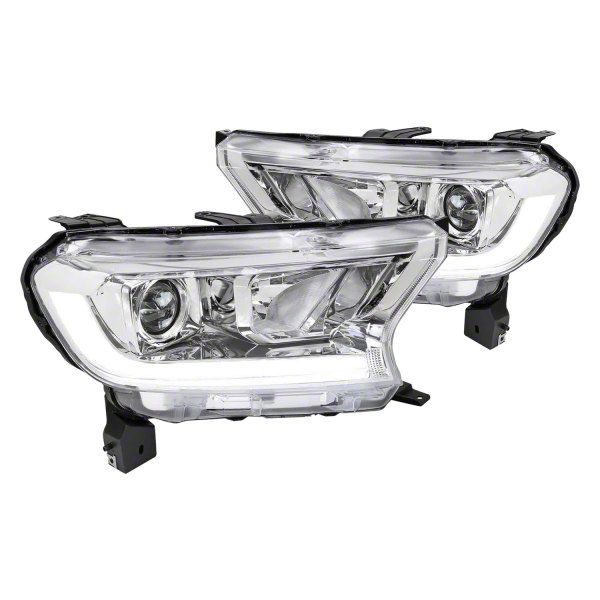 Improved Replacement. Made for the Ford Ranger, XL, and XLT models, these Sequential LED DRL Bar Projector Headlights come in pairs with a matte black housing and clear polycarbonate lenses. Built as a direct replacement for your ride’s stock headlights, these parts are UV-protected and high-impact resistant. Built by ISO-certified manufacturers, these headlights have high-quality butyl sealant and use high-intensity fiber optic style DRL tubes that restore your ride’s stock functionality.