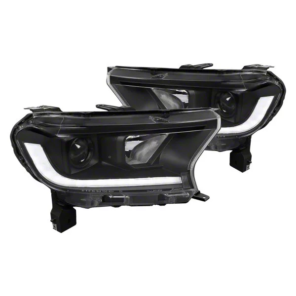 Fresher Appearance. Rock a sleek and fresh new look for your Ranger and upgrade to these Sequential LED DRL Bar Projector Headlights; Matte Black Housing; Clear Lens. Expertly designed and precision manufactured as a direct replacement to your boring stock lamps, it offers the same level of effective road lighting with the addition of an LED light bar to better outline the facade of your vehicle.