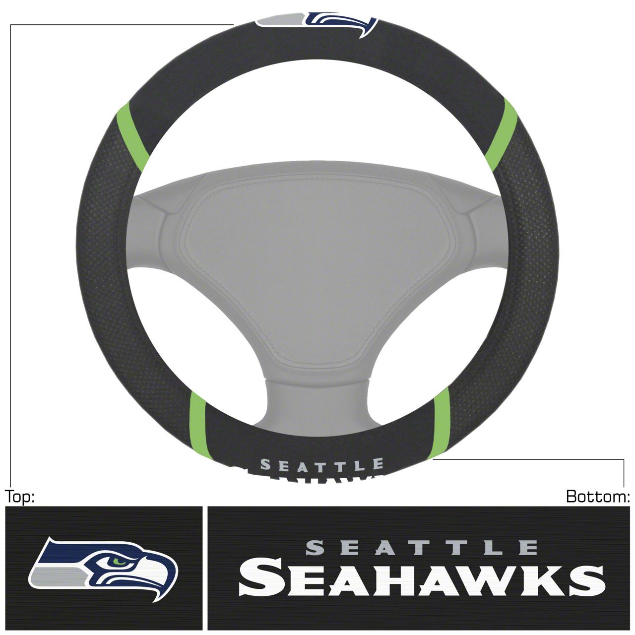 Steering Wheel Cover with Seattle Seahawks Logo; Black (Universal; Some Adaptation May Be Required)