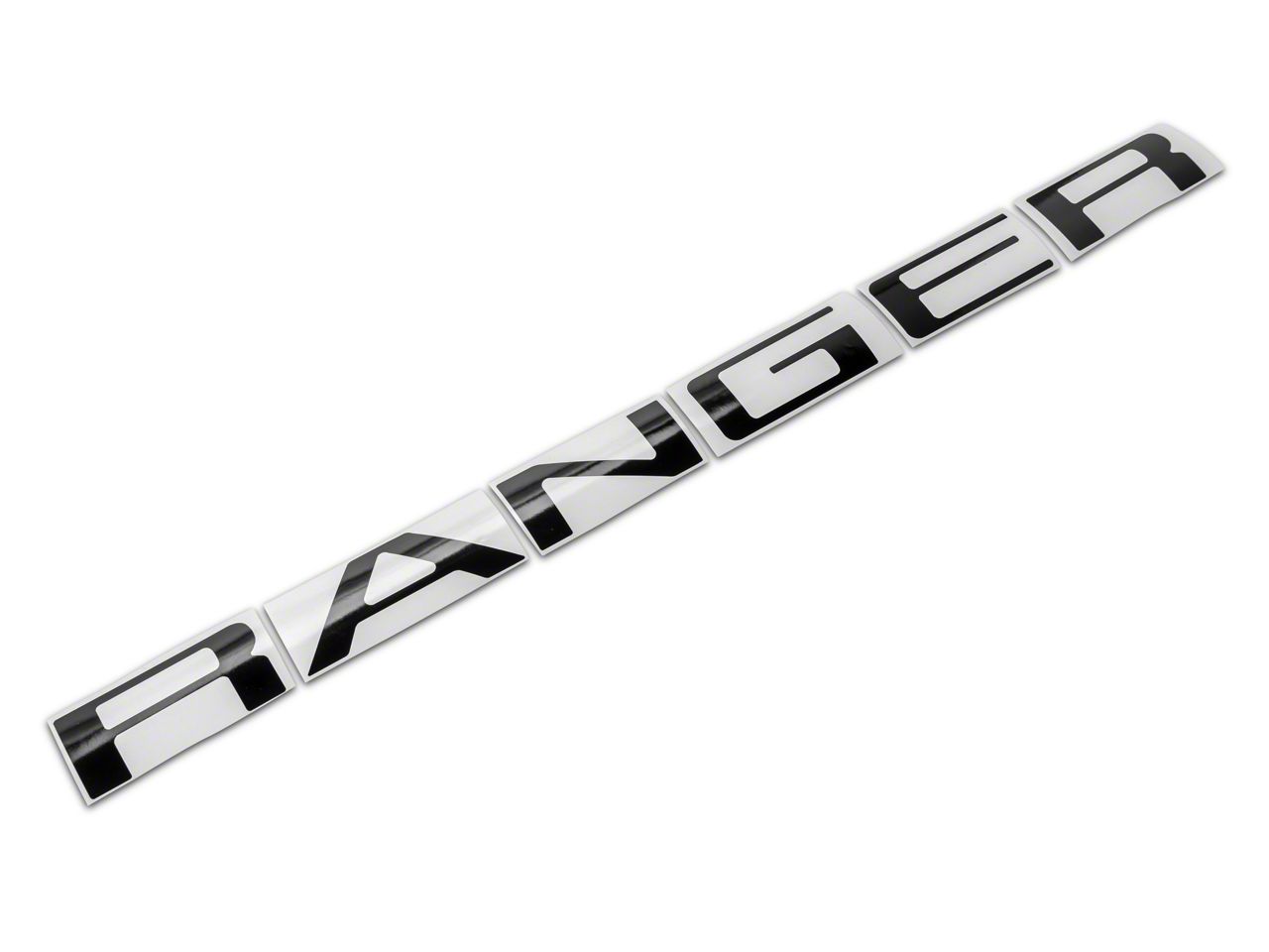 Outlines the Brand in Bold. Finish off the custom look of your Ford Ranger with these Tailgate Insert Letters in Gloss Black. These decals add an amazing contrasting style accent on your Ford Ranger tailgate with its gloss black RANGER text. With such a small investment, you can add a show-stopping detail to your truck.