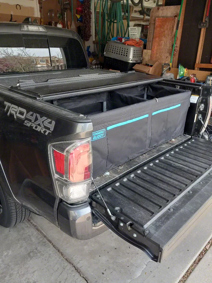 Durable Polyester Base. The Tonneau Buddy Mid-Size is made of densely woven 600D polyester and thick impact-dampening foam that strengthens its structure and guarantees that any sensitive objects stored within remain secure even in a collision. Additionally, it's insulated inside ensures that none of your goods will be harmed by dampness.