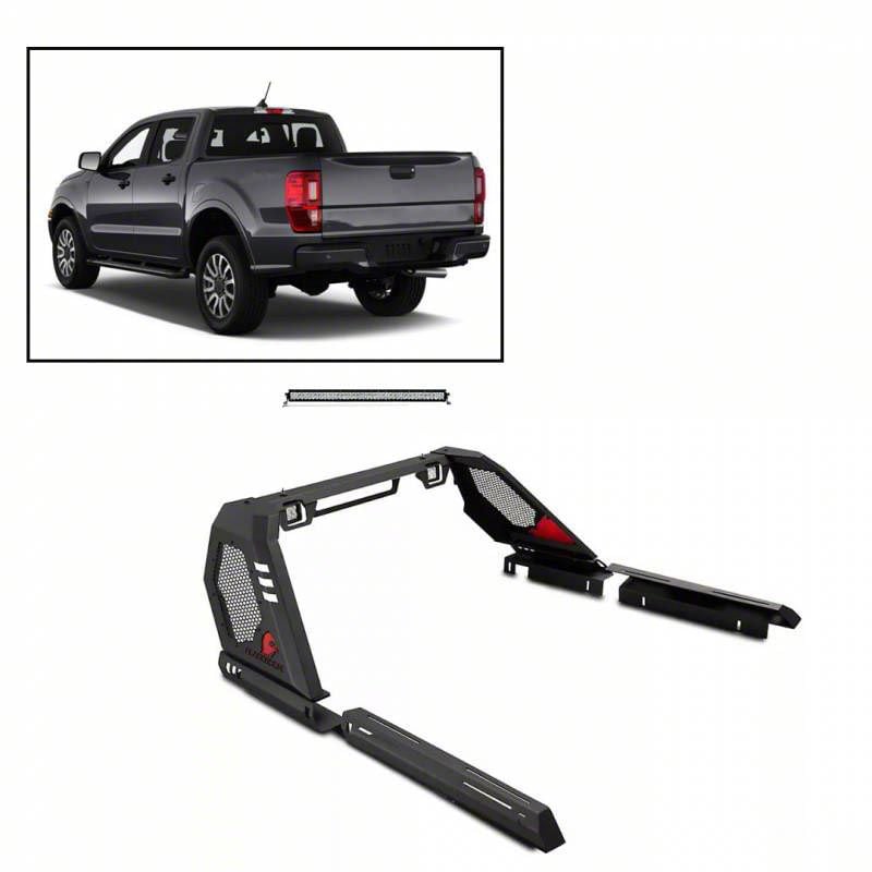 Included Lighting. Made for the Ford Ranger models, this Roll Bar comes in a stylish matte black finish and has a unique knockdown design. Built to extend along the bed rails for additional tie-down points, this roll bar is drilled onto your ride and is made from cold-rolled mild steel. Equipped with a 40-inch LED light bar and 2 bright work cube lights, this roll bar is a great upgrade for those who access their truck bed during the night. This roll bar also includes mounting hardware and easy-to-install plug-and-play wiring harnesses for the lights.