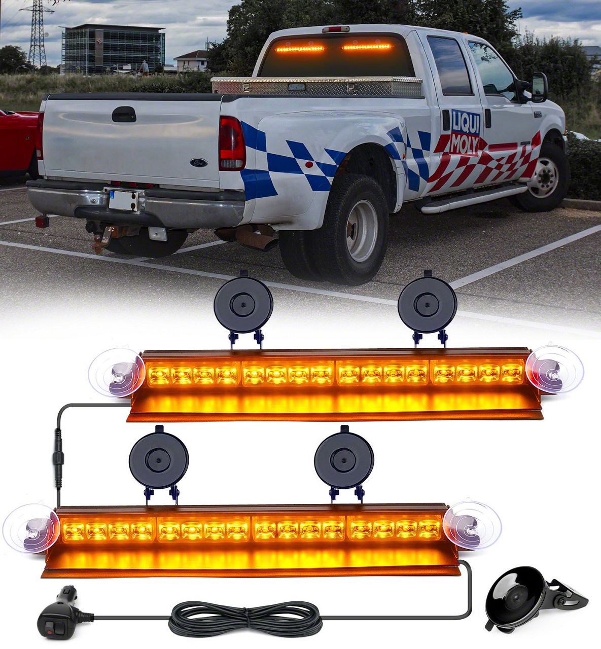 HIGH BRIGHTNESS - Our Windshield Strobe Flashing Dual Lightbar features 8 LED modules with a total of 32 high-power LEDs. The upgraded lens allows the brightness enough to be seen up to 1/2 mile in distance, even visible during daytime conditions.