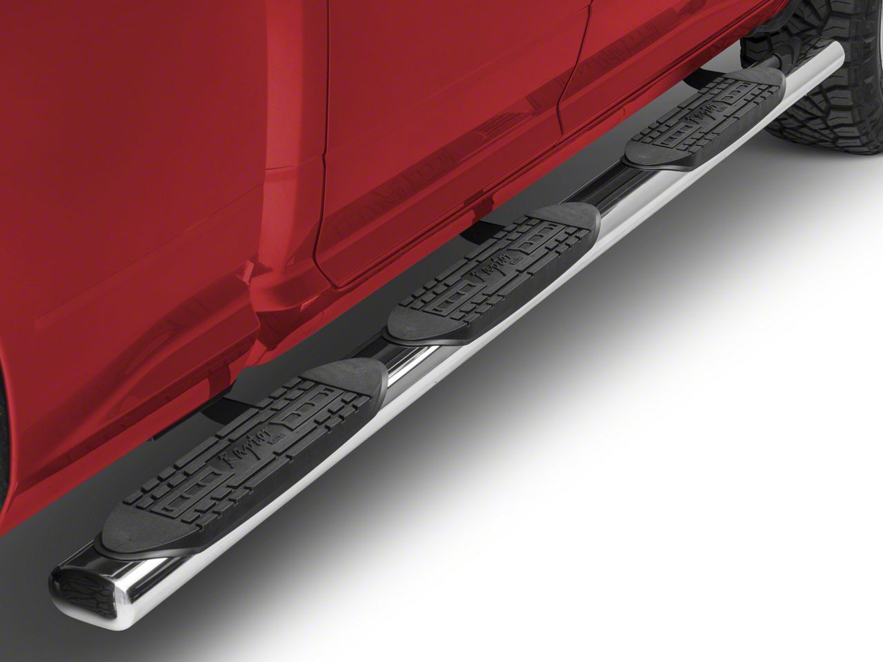 Hardy and Attractive 3-Pad Step. Triple step pads mark the Raptor Series 5-inch Oval Wheel to Wheel Side Step Bars, Polished Stainless as steps that are a good choice if you often access your pickup bed from the side – or just want a strong, quality manufactured set of steps you can rely on for stout support. Saddle mounting of the step pads means that they handy and reachable from many different directions – practically any angle you’re capable of stepping from. They’ve got deep, sharp tread patterns that create large amounts of traction for your foot as well. The bars themselves are stout and stable, featuring a polished stainless steel finish that gleams like a liquid mirror and gives your truck cab an ultramodern look.