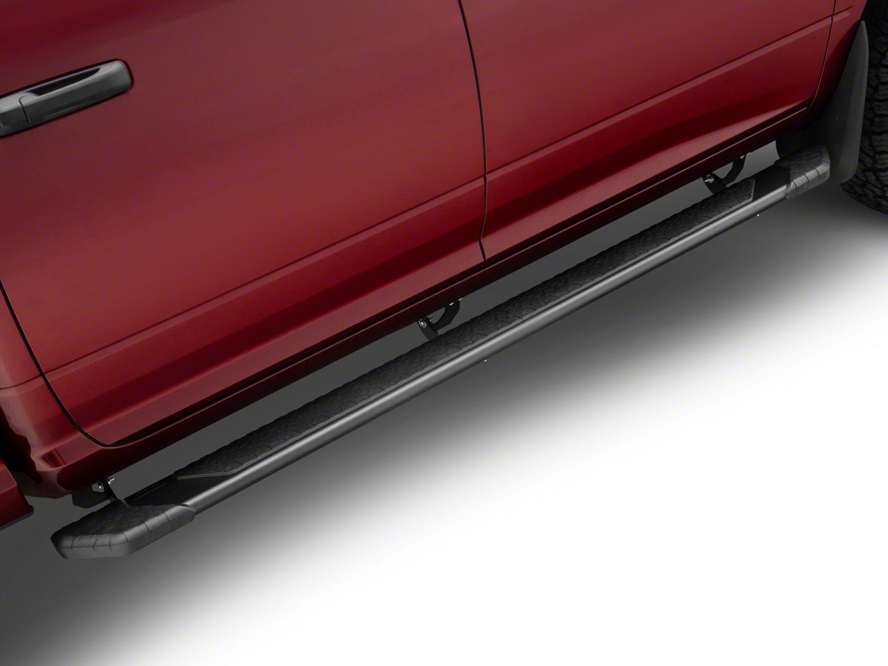 Extra Stout Assistance. Looking for a way to make getting in and out of your RAM 2500 a little easier? Meet the Raptor Series 5-Inch Tread Step Running Boards; your new best friend for easy access in and out of your RAM 2500 Crew Cab. These running boards feature a flat board shape and a 5-inch wide step, making them the perfect choice for those who want a little extra assistance getting in and out of their truck. Plus, they come in a textured black finish that is sure to complement your RAM's look.