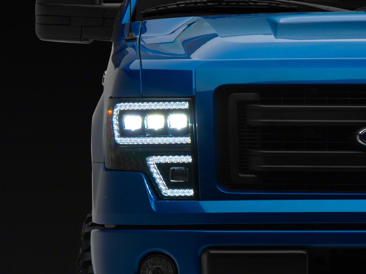 Application. These Raxiom LED Projector Headlights with LED DRL; Black Housing; Clear Lens fits 2009-2014 F-150's with out factory HID headlights.