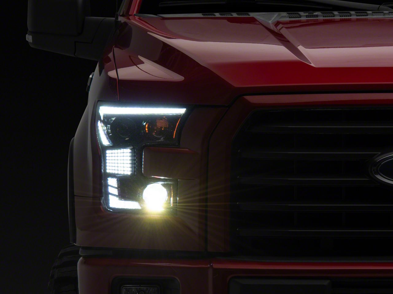 Improves Appearance and Visibility. Improve the appearance and nighttime driving visibility of your F-150 just by replacing your old factory halogen headlights with a brand new pair of Raxiom XR Series LED Projector Headlights. These Projector Headlights feature Daytime Running Light (DRL) accent light bars that will give F-150 a clean, ultra modern appearance.