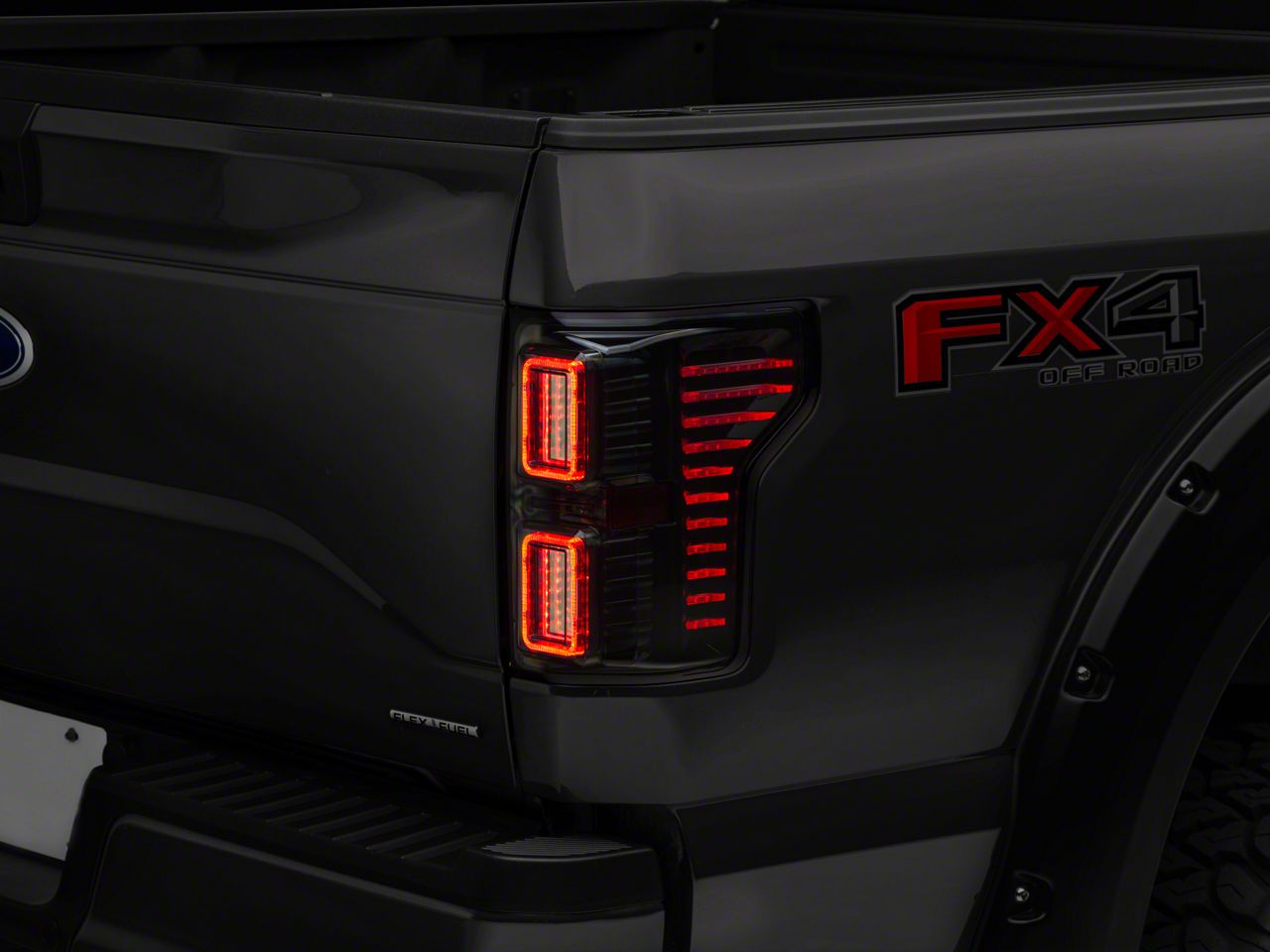 Infinity Rear Styling. Transform the appearance of your F-150 with the addition of these Raxiom Horizon LED Tail Lights. Complete with edgy smoked lenses, these tail lights incorporate super vivid LED lighting to deliver brighter light that will last much longer than any incandescent bulb can provide. Not only that, dual square brake lighting with a central reverse and tricked out dual center reflectors with infinity detailing brings an awesome modern appeal to your F-150 pickup.