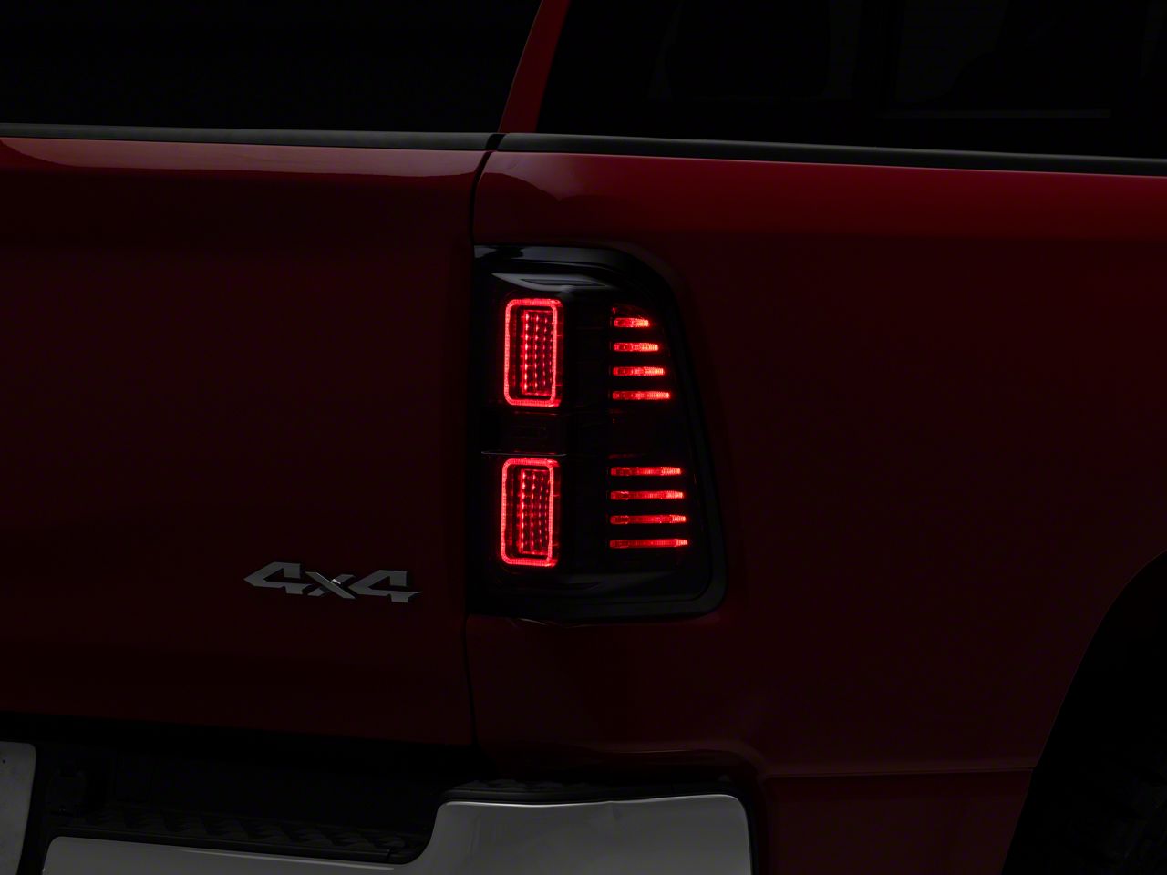 Application. These Raxiom CXR Series LED Tail Lights; Black Housing; Smoked Lens are designed to fit 2019-2024 RAM 1500 models equipped with Factory Halogen Tail Lights. Driver and passenger side tail lights are included.