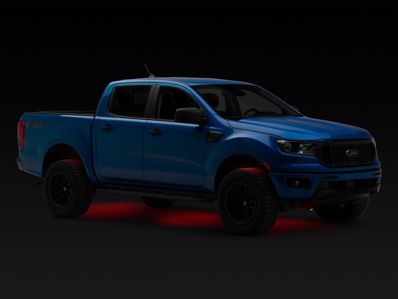 Custom Rock Lighting. Negotiating trails and rocks at night, or in poor weather conditions, can be very challenging. However, by installing a Raxiom LED Rock Light Kit you will be able to light up your wheel wells and undercarriage allowing for better visibility of the situation. This Rock Light Kit not only aids in off-road excursions, but it also adds unique custom lighting effects to your vehicles exterior. Lighting options include a full array of colors, as well as strobe, pulsating and a solid modes.