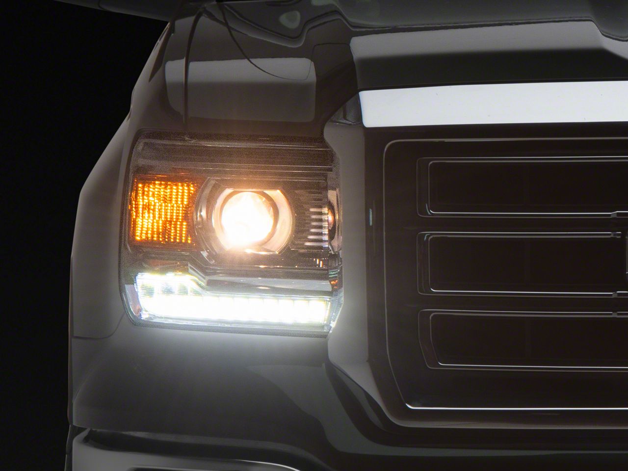 Application. These Raxiom LED DRL Bar Factory Style Headlights; Chrome Housing; Clear Lens are designed to fit 2014-2018 GMC Sierra 1500 HD Models Equipped with Factory Halogen Headlights. Driver and passenger side lights are included.