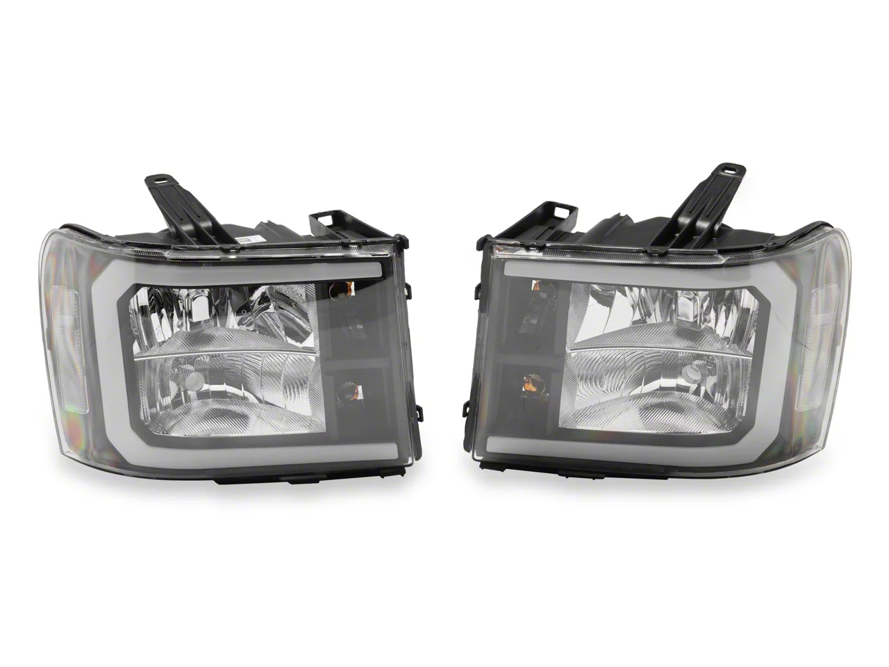 Improves Appearance and Visibility. Improve the appearance and nighttime driving visibility of your 2007-2014 GMC Sierra 2500 HD just by replacing your old weathered, worn out, and yellowing factory headlights with a brand new pair of Raxiom LED DRL Bar Headlights that feature clear lenses and chrome housings. These Headlights feature a clean OE style design with Daytime Running Light (DRL) accent light bars that will give your Sierra a fresh new look.