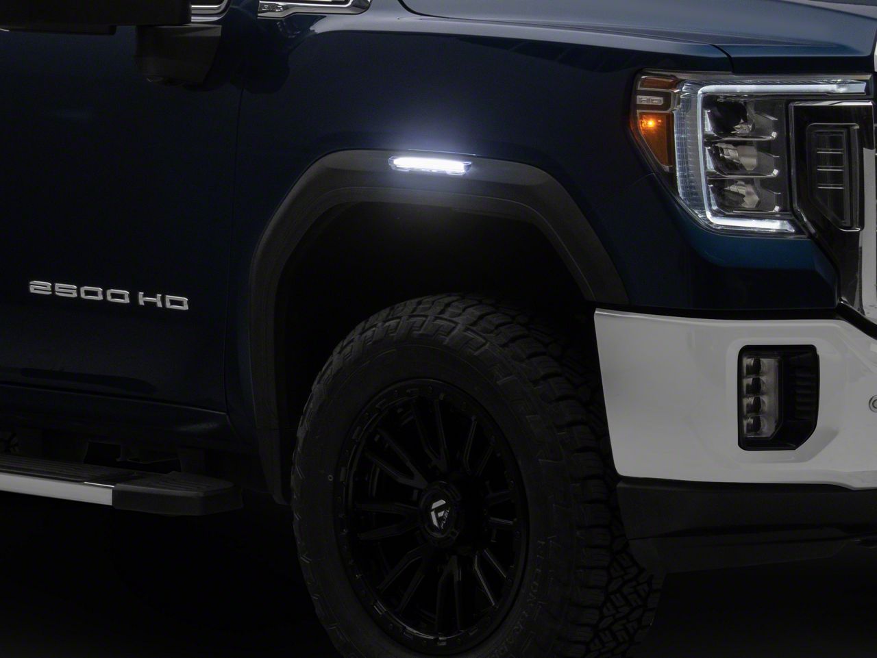 Lighting Appearance Upgrade. An excellent way to update the exterior styling of your 2020-2026 GMC Sierra 2500 HD is with a set of Raxiom V2 LED Side Marker Lights. These Side Marker Lights feature a razor sharp LED strip that replaces the unsightly hot spot of the factory lights. These Raxiom Side Marker Lights not only look fantastic, but they are also much brighter than the weak stock incandescent lights for increased visibility day or night.