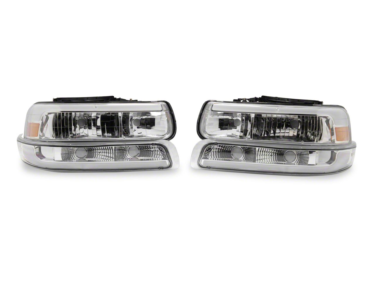 AmericanTrucks no longer carries the Raxiom LED Bar OE Style Headlights with Bumper Lights; Chrome Housing; Clear Lens (99-02 Silverado 1500). Please check out 1999-2006 Chevy Silverado Lights for an updated selection.
