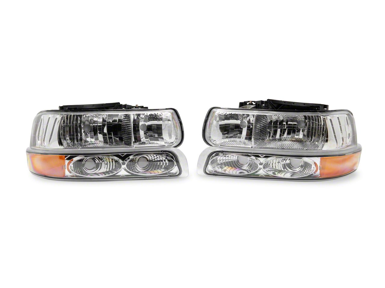 Raxiom OE Style Headlights with Bumper Lights; Chrome Housing; Clear Lens (99-02 Silverado 1500)Find parts that fit my vehicle