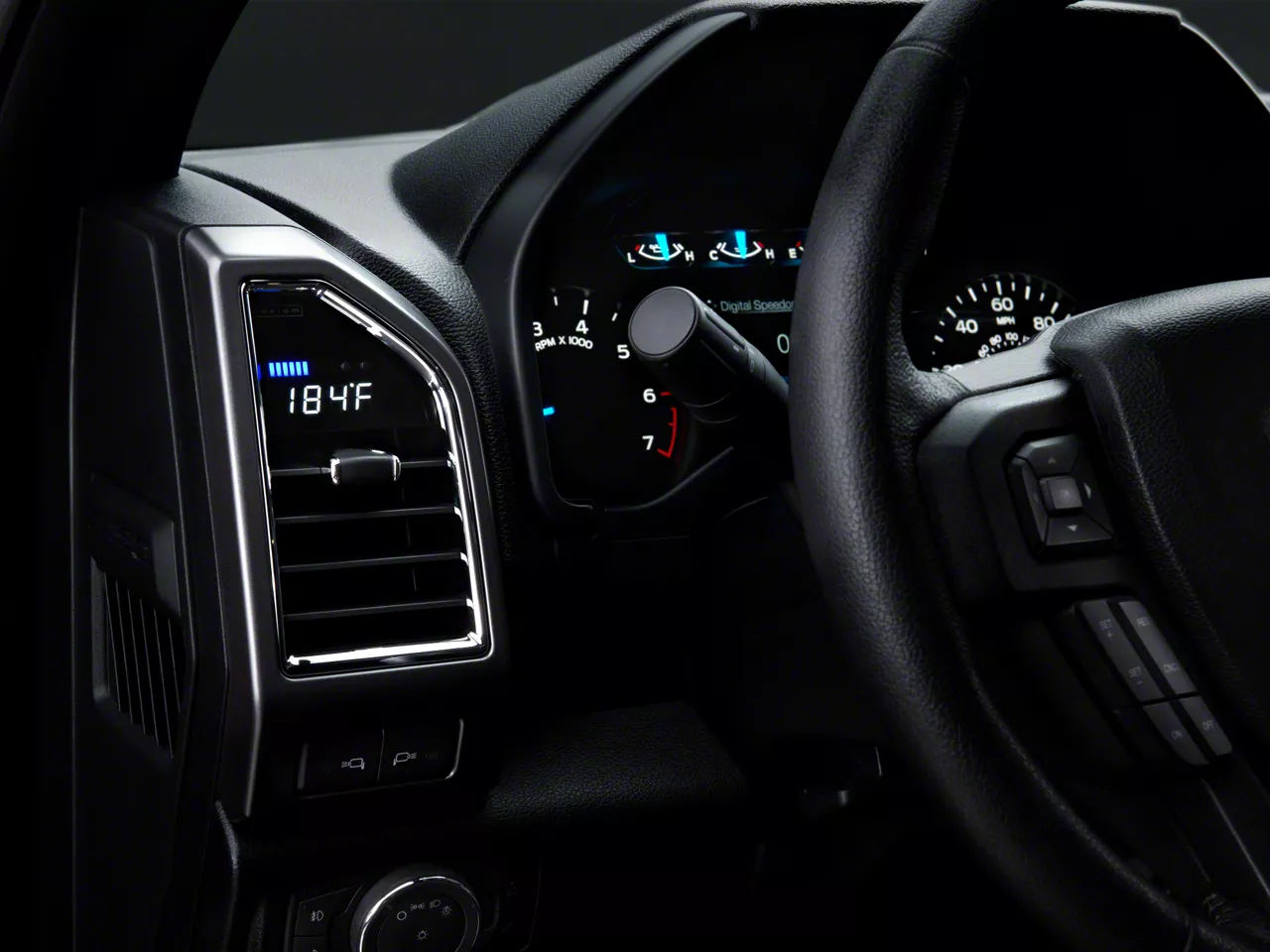 Multi-Function Digital Vent Gauge. Raxiom's Vent Integrated OBD2 Multi-Gauge allows you to monitor all of your F-150's engine parameters in one easy to use digital gauge. By closely tracking your engines critical systems you can ensure that your F-150 is performing at its best. Designed to install in your F-150's driver side HVAC vent, for a super clean integrated appearance, the Multi-Gauge will not obstruct airflow. Raxiom's Multi-Gauge is ideal for all drivers who like to keep a close eye on their F-150's health.
