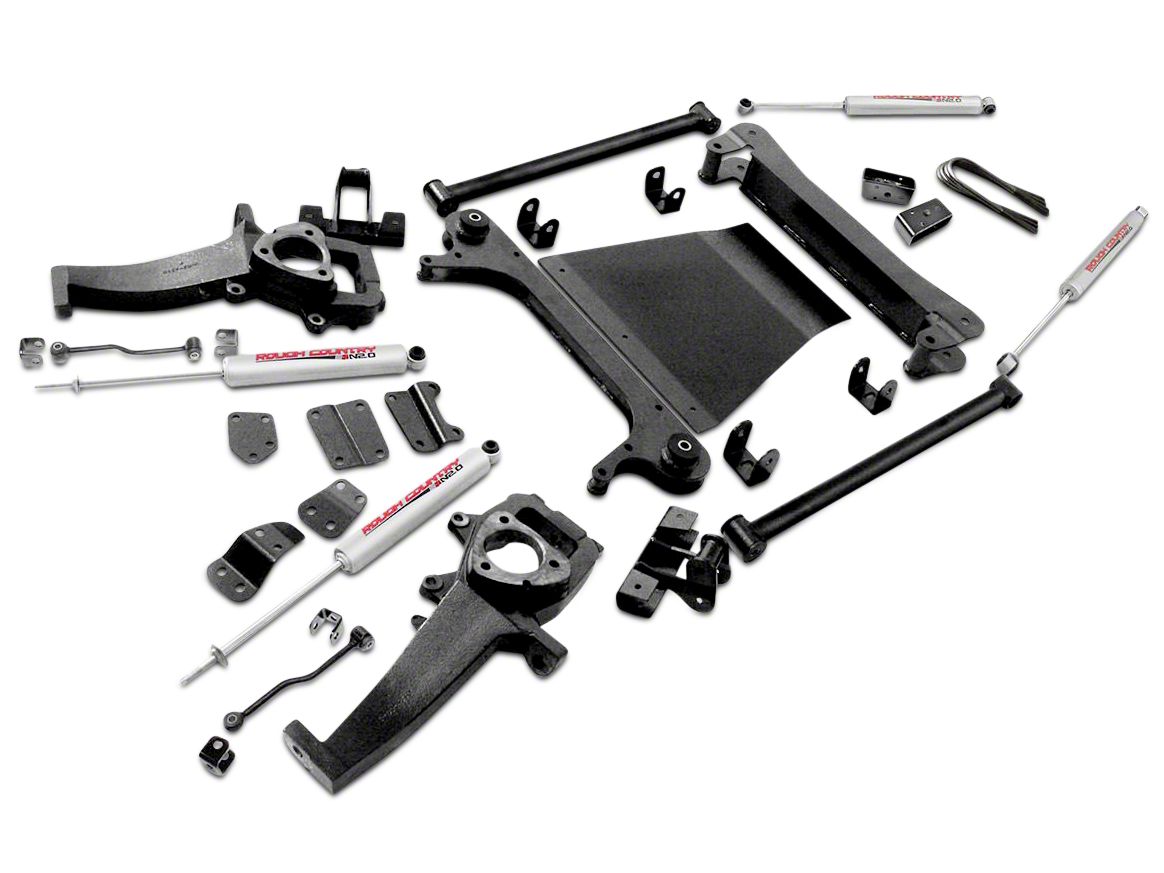 Bolt-on Installation. The Rough Country Suspension Lift Kit is all-encompassing, meaning it includes all components for an easier installation, from the skid plate to the beefy lifted knuckles, 3-inch lift blocks, mounting hardware, and four Premium N2.0 Shocks. The bolt-on installation takes roughly 6 to 8 hours.