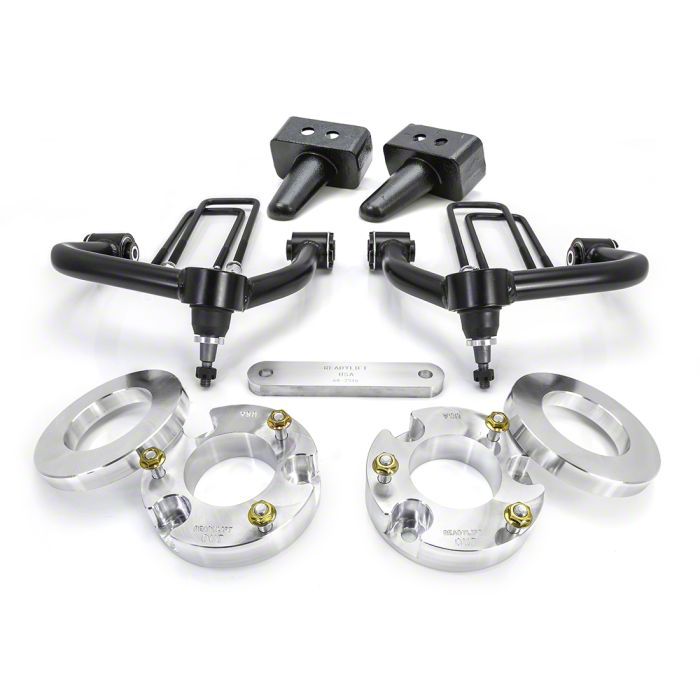 Lifted and Tough Performance. Raise up your truck effectively increasing your ground clearance and also your ability to handle more off-road situations with this ReadyLift Suspension Lift Kit. The kit raises the height of your vehicle by 3.5-inches and it does so using strut extensions up front, control arms and lift blocks all together. The kit offers balanced lifting force and really helps create that height increase that you need for maximum performance.