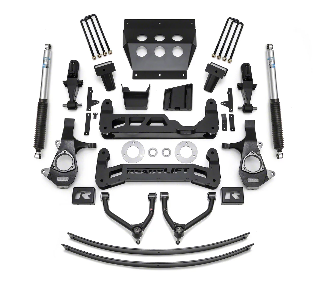 Fitted with Bilstein Shocks. ReadyLIFT uses Bilstein shocks in this suspension lift kit. This shock assembly features a monotube design to give the user a guaranteed fade-free and consistent performance. In addition, Bilstein shock absorbers are tuned according to specific applications to assure optimal performance.