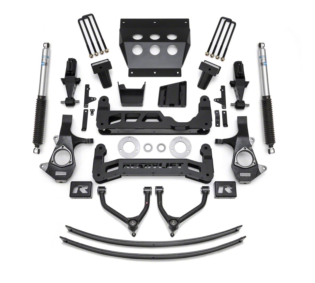 Fitted with Bilstein Shocks. ReadyLIFT uses Bilstein shocks in this suspension lift kit. This shock assembly features a monotube design to give the user a guaranteed fade-free and consistent performance. In addition, Bilstein shock absorbers are tuned according to specific applications to assure optimal performance.